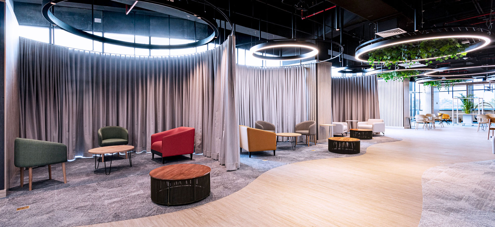 Esta área cuenta con salas de reuniones, espacios de trabajo flexibles y un auditorio ideal para eventos corporativos y presentaciones. Cada rincón está pensado para inspirar la colaboración y el intercambio de ideas en un entorno cómodo y funcional, que busca potenciar tanto la productividad como el bienestar de quienes trabajan en el proyecto.